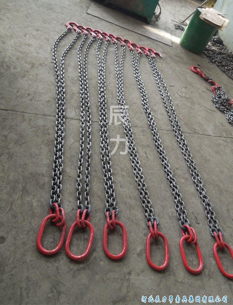 辰力公司可按照客戶的需求生產帶連接環(huán)的雙腿起重鏈條索具。如上圖為13mm的連接環(huán)與10mm鏈條相連接,這樣可大大減小鏈條索具的成本。