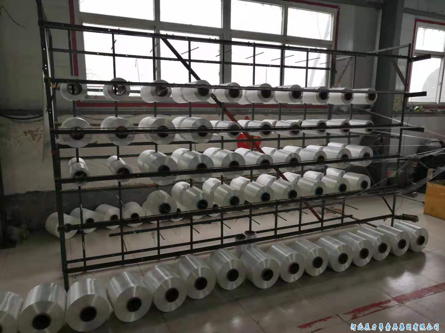 咱們現在不是用一步紡嘛,一步紡的意思就是把吊裝帶原材料直接弄在紗架上,然后編織成吊裝帶帶皮。整徑的意思就是,以前咱們是一開始做吊裝帶帶皮的時候,成品的吊裝帶帶皮是絲太多,咱們那個吊裝帶編織機的那個紗架一次放不下這么多絲,所以就讓原材料一根兒一根兒的整成一個徑盤。假如說三十六根絲整成一個徑盤,整成一股線,整經機就是干這用的。就是多根兒絲,然后整合在一起,這就叫整徑。